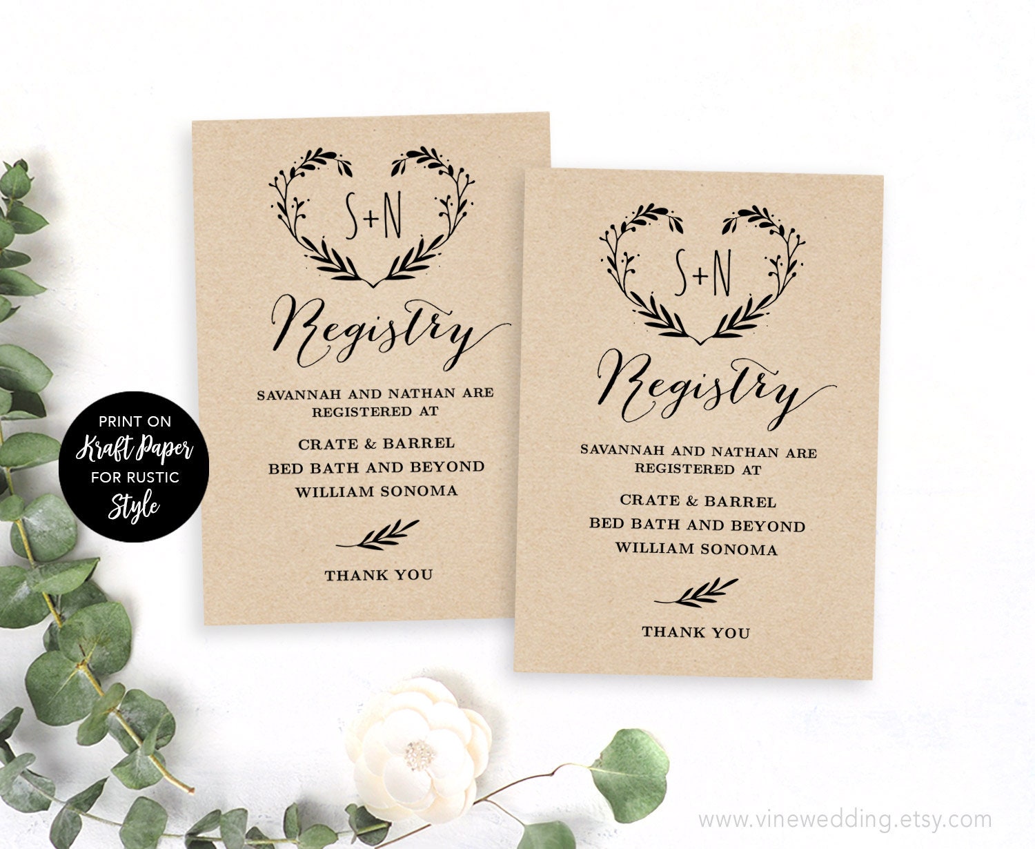 Wedding Registry Card Template Gift Registry Card Minimalist Etsy